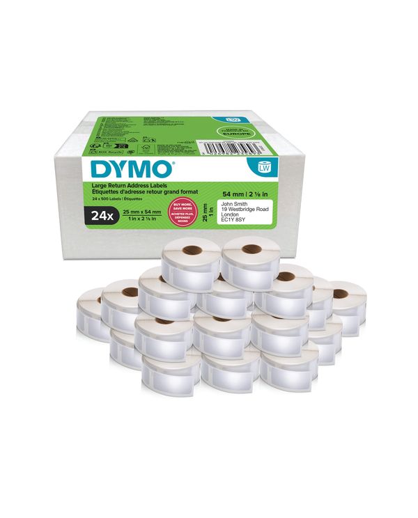 Dymo Large Return Address Labels 25x54mm 500 Labels (Pack of 24) 2223589